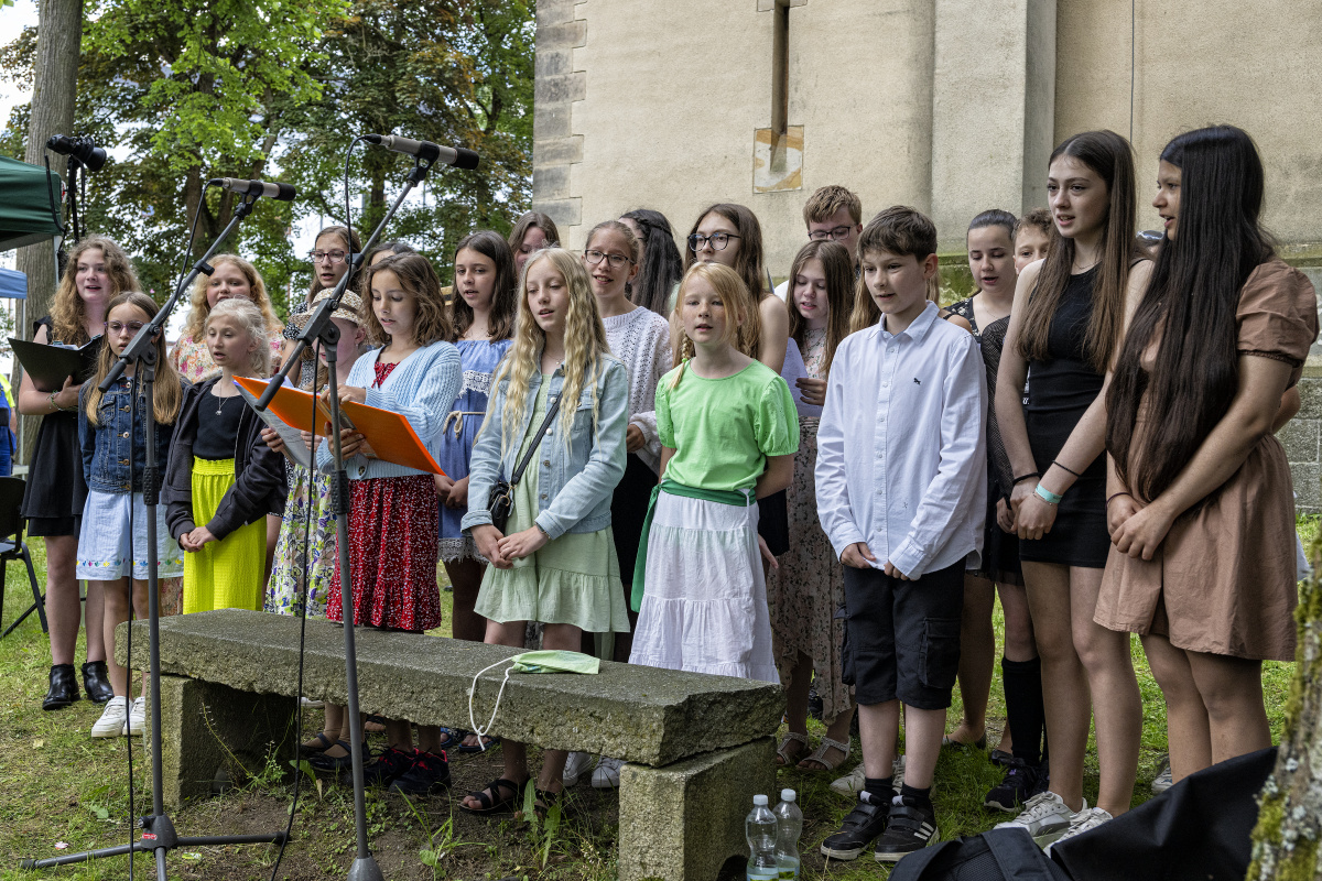 Až na několik technických defektů, které se ale zdárně podařilo vyřešit, všichni jezdci úspěšně dosáhli cíle – vedeni Markem Hotovcem a Vladimírem Vyhnálkem dorazili se třináctou hodinou do Tanvaldu ke kostelu sv. Františka z Assisi. Zde čekalo bouřlivé uvítání, proběhlo několikanásobné defilé s odvážnými jízdami zručnosti a došlo i na sdílení prvních dojmů z cesty. Následovala Píseň cyklistů v Liptákově. Do školy i do úřadu na kole, na kole, na kole, krásné vpředu, krásné vzadu, na kole, na kole, na kole…. znělo sborově náměstíčkem pod kostelem. Pak už se rozezpívaly smíšené pěvecké sbory ZUŠ Tanvald HLÁSKY a MELODIA se sbormistryněmi Zuzanou Schořovskou a Markétou de Martini a klavírním doprovodem Anety Hlubučkové. Zazněly nejen písně Jaroslava Uhlíře, ale také například Ondřeje Gregora Brzobohatého, Petra Tomeše nebo skupiny Queen.