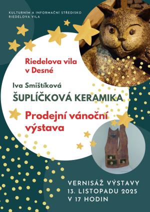 Prodejní vánoční výstava Ivy Smištíkové. Vernisáž 13. listopadu v 17 hodin.