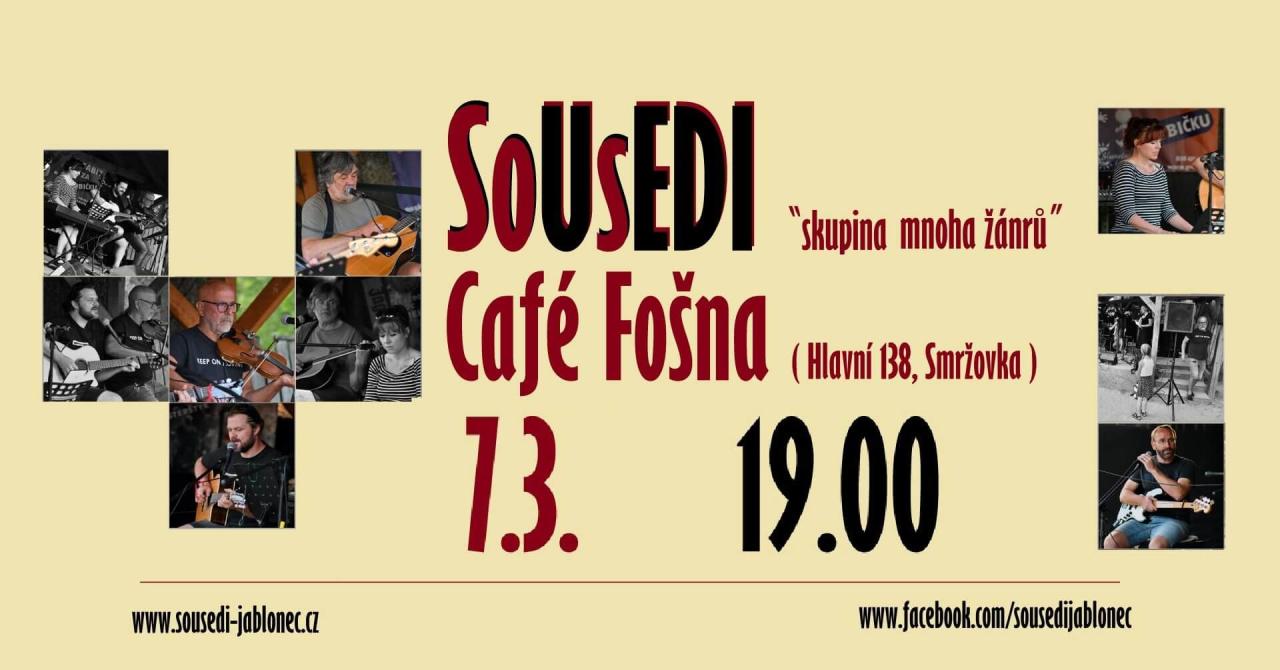 Sousedi se sejdou v 19 hodin v Café Fošna (Hlavní 138). Koncert kapely mnoha žánrů.