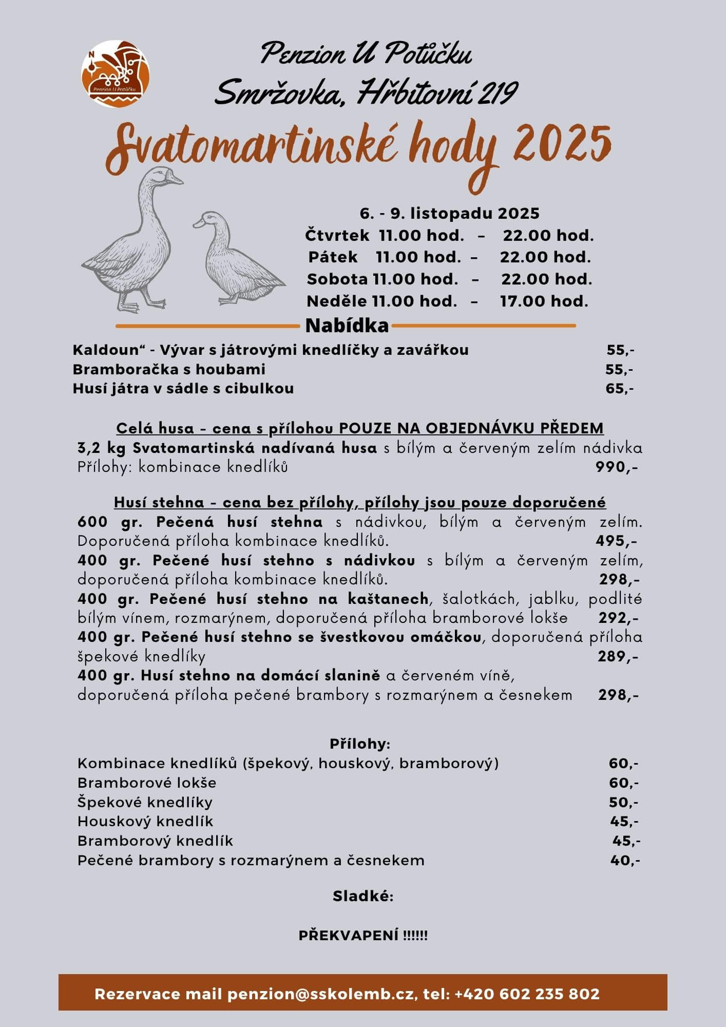 Pestrá nabídka tradičních svatomartinských jídel (jídelníček v příloze)
