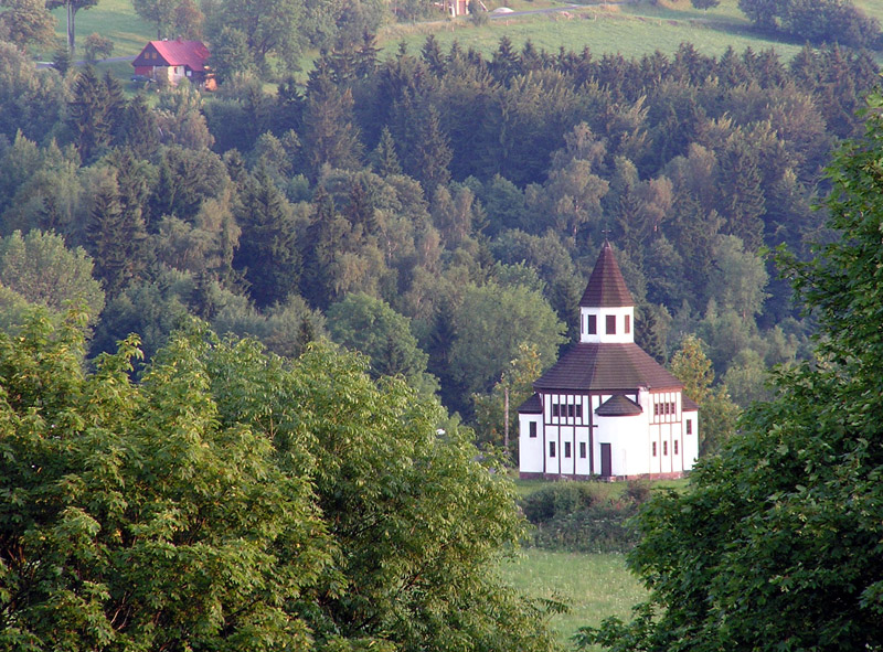 Po průjezdu Příchovic v místech, kde končí asfalt a cesta se má odklonit dolů doleva se nám vyplatí poslední zastávka. Pokud popojedeme ještě asi 100 m rovně od křížení cest, naskytne se nám pohled na kostelík v Tesařově, v pozadí uvidíme Bukovec a skoro celé Jizerky. Po kilometrovém sjezdu tato trasa končí zpátky u informačního centra Kořenov.