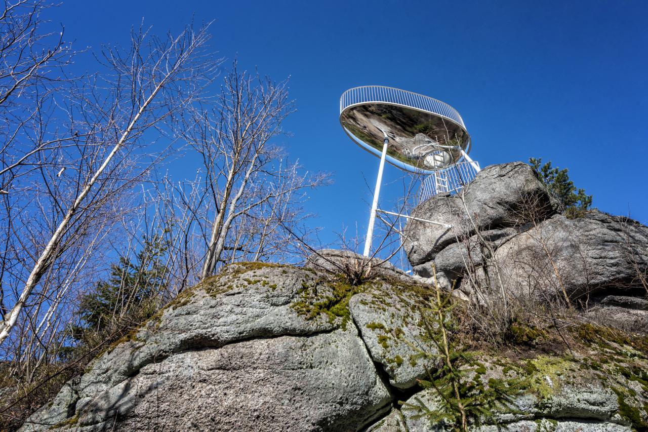 „Bobovka“. Právě estetika odvážného bobového sportu, při němž se lesem Malého Špičáku po zakroucené dráze míhaly barevné skořepiny bobů, ovlivnila i tvar vyhlídky Špička. Nejvýraznějším prvkem nové stavby je lesklé „břicho“ vyhlídkové plošiny, v níž se odráží okolní žula, stromy i samotní návštěvníci.