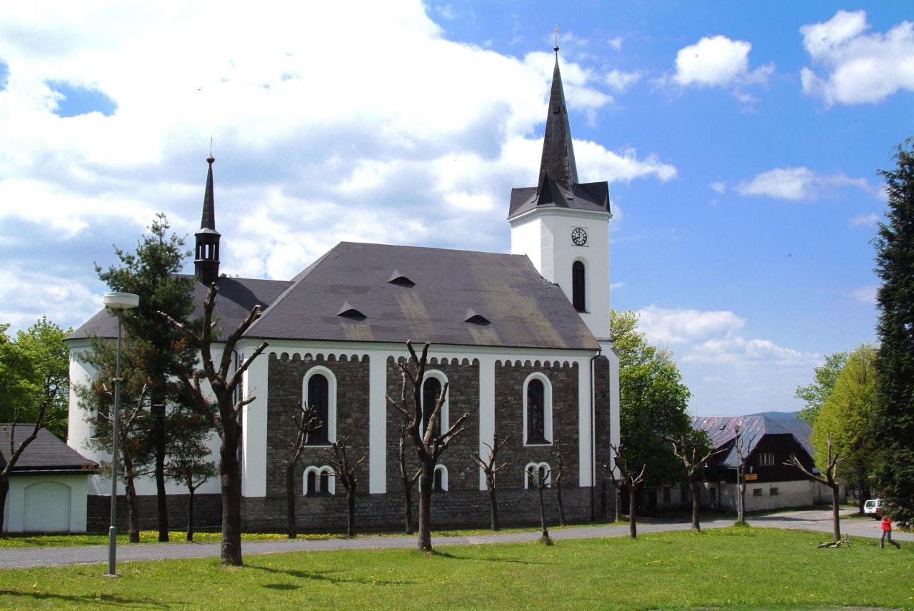 Obec Desná v Jizerských horách byla založena v roce 1691 hrabětem Albrechtem Maxmiliánem Desfoursem a její dnešní podoba vznikla spojením několika malých osad. Rozkládá se v údolí kolem říček Bílá a Černá Desná a na okolních stráních. K významnému rozkvětu obce došlo v druhé polovině minulého století, kdy zde byly v provozu velmi známé lázně. Na jejich místě stojí dnes park, kterému vévodí architektonicky zajímavá Riedlova vila. Tu nechal roku 1895 postavit místní sklářský podnikatel Josef Riedl. V roce 1945 přišli do Desné noví osídlenci, v té době také došlo k dalšímu rozvoji sklářského a keramického průmyslu. Trasa výletu začíná u římskokatolického kostela Nanebevzetí Panny Marie. Kostel, který byl postaven roku 1901, má nad vchodem kamenný reliéf "Královny nanebevzaté". Interiér kostela můžete vidět při bohoslužbách. Další zastávkou je starokatolický kostel Nanebevstoupení Páně z roku 1890. Přestože má kostel značně poničenou fasádu, skrývá opravený interiér, a řadí se k nejvýznamnějším památkám města. Minout nelze ani novogotickou Riedlovu hrobku, ke které se lze dostat procházkou po cestě z parkovištěu restaurace Pod Lípou. Hrobka, postavená v roce 1890, patřila podnikateli Josefu Riedlovi, majiteli zdejší sklářské hutě.