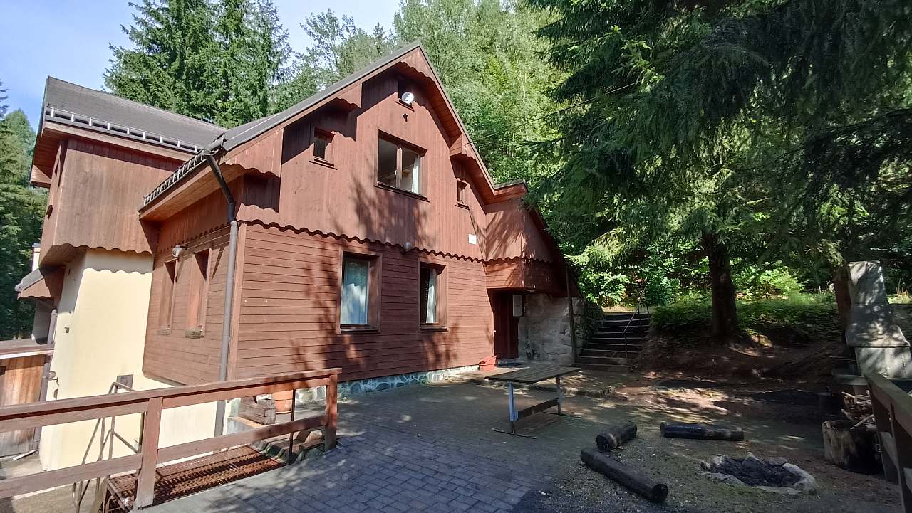 Chalupa k pronájmu poskytuje ubytování pro 22 osob v 6 ložnicích.