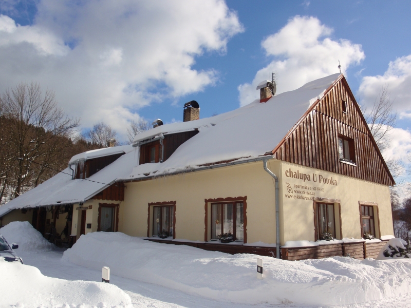 Chalupa U Potoka se nachází v malé a klidné vesničce Josefův Důl, v samém srdci Jizerských hor. Chalupa stojí na kraji vesnice a za objektem teče krásný horský Jedlový potok. Místo je obklopeno rozsáhlými lesy a romantickým CHKO Jizerských hor. Oblast ve které se chalupa nachází je vhodná k návštěvám okolních památek ve významných městech Severních Čech. Je zde k dispozici zahrada o celkové rozloze 1.000 m2. Děti zde mají zázemí v podobě houpaček, pískoviště, prolézaček, bazénu se skluzavkou, trampolíny a mnohé další. Na chalupě je bezplatné Wi-Fi připojení. Jsou zde 4 zcela samostatné kompletně vybavené apartmány. Pro ubytované hosty se nachází v suterénu společenská místnost vybavená stolním tenisem, kulečníkem, profi stolním fotbalem, šipkama a forbesem. Ubytovaní hosté mají spoustu možností kam vyrazit, ať už se jedná o pěší turistiku či cykloturistiku, díky napojení chalupy U Potoka na Jizerskou magistrálu, začínající za chalupou, je zde možnost cyklistických výletů v létě nebo běžkařských výletů v zimě, například na Smědavu, protrženou přehradu, Knajpu nebo na Jizerku. Jednou z možností kam vyrazit lyžovat jsou vleky u chalupy přímo v obci, které jsou vzdáleny 350 m od našeho ubytování. Další možnosti jsou Tanvaldský Špičák, Severák, Bedřichov nebo Ještěd.