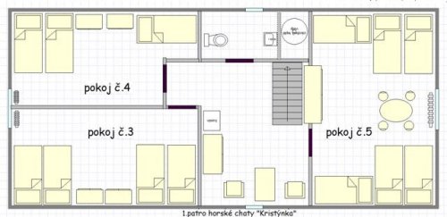 Samotné ubytování nabízí chata celkem ve čtyřech standardně vybavených pokojích a jednom apartmánu. Sociální zařízení je společné. Hostům k dispozici je společenská místnost s TV, kuchyňka, úschovna lyží a kol, dále pak hřiště na míčové hry a parkoviště.