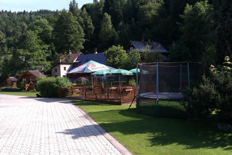 V letním období je k dispozici ohniště nad splavem či posezení na zahradě pod slunečníky, koupání pro otužilce, pro děti i dospělé 3,5 metrová trampolína.