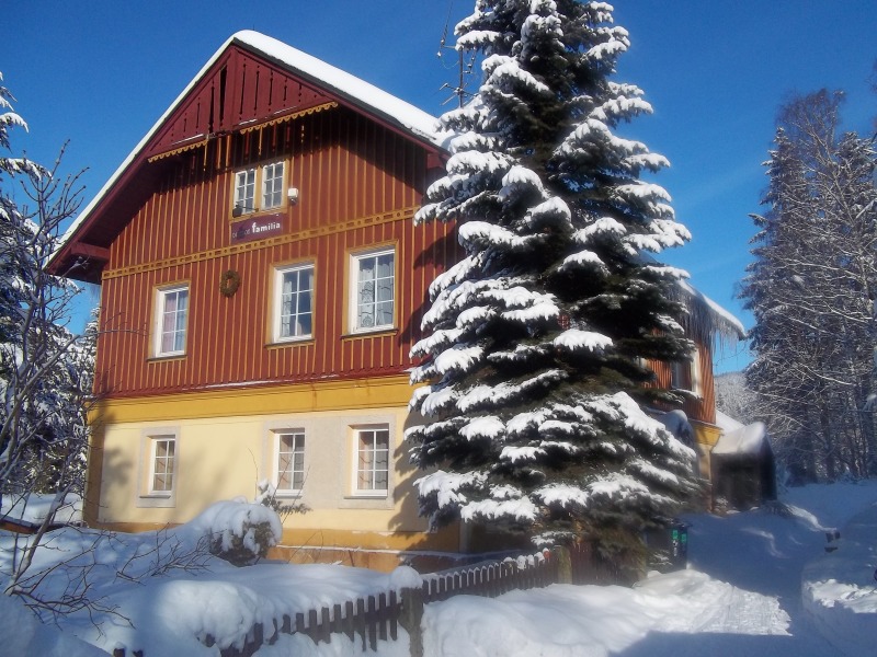 Rodinný pension Familia nabízí příjemné ubytování v pěti 2 - 5 lůžkových pokojích (dle počtu přistýlek) s vlastní sprchou, WC, TV a SAT. Na pensionu jsou dvě společenské místnosti, dvě vybavené kuchyňky, úschovna lyží a dětský koutek. Pro nejmenší hosty zapůjčíme dětské postýlky, jídelní stoličky i kočárek. Pension má ideální umístění, díky své poloze v centru Harrachova, ale přitom na klidném místě.