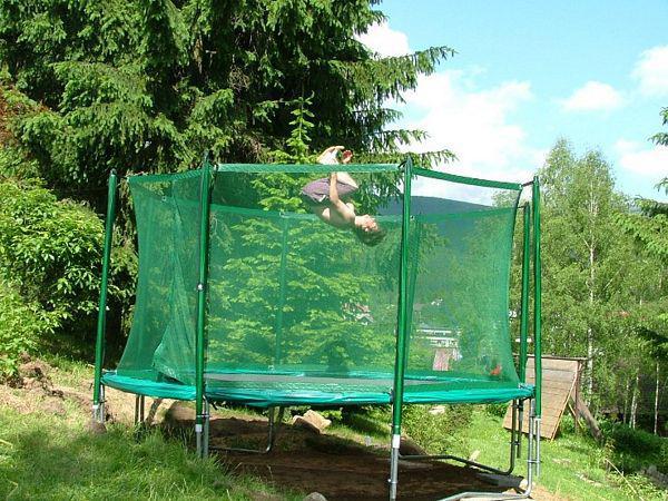 Nacházíme se v klidné zóně. Odpočívat můžete na zahradě u domu, kde máte k dispozici zahradní nábytek, přenosný gril, plastový bazén o průměru 3,8 m a ohniště. Můžete si zaskákat na trampolíně o průměru 4 m.