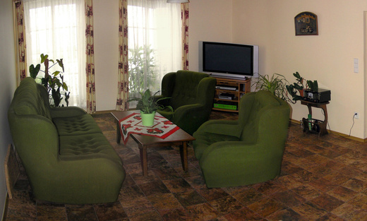 Hosté se mohou ubytovat v 5 dvoulůžkových pokojích, z toho jsou 4 s přistýlkou pro další 2 osoby. Přistýlka je na rozkládacím gauči s lamelami, které zajišťují pohodlné a klidné spaní. Pokoje jsou vybaveny televizí se satelitními pořady, DVD přehrávačem a k dispozici je cca 200 filmů na DVD. Každý pokoj má své samostatné sociální zařízení s WC, sprchou a fénem, v předsíni pokoje je šatna. Klubovna s velkoplošnou televizí a pohodlnými sedacími soupravami vyhovuje návštěvníkům, kteří tráví rádi čas společně se svými přáteli. Plně vybavená kuchyňka umožňuje plnohodnotné vaření. Lednice je samozřejmou součástí kuchyňky.