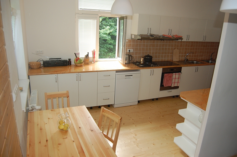 Dále je v přízemí velká společná kuchyň s přilehlou jídelnou a společenskou místností. V celém objektu je wi-fi připojení k internetu.