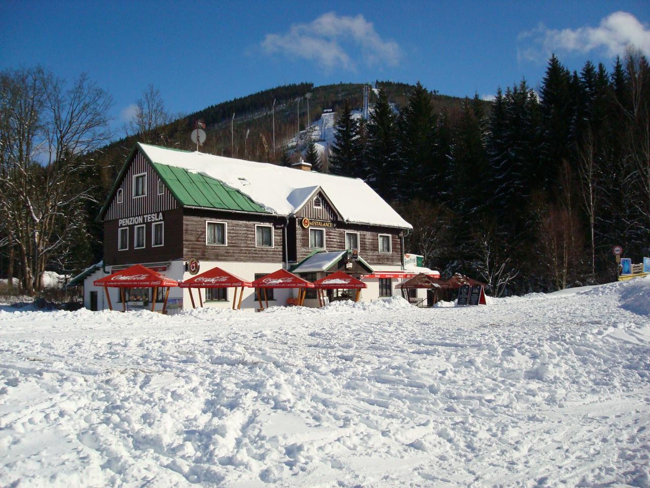 Penzion Tesla poskytuje ubytování v samém centru města Harrachov, přímo u čtyřsedačkové lanovky na Čertovu horu ve výšce 650m nad mořem, v turistickém regionu Krkonoše.