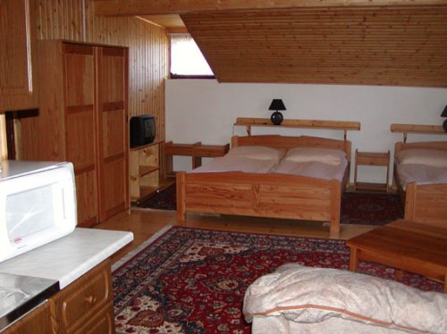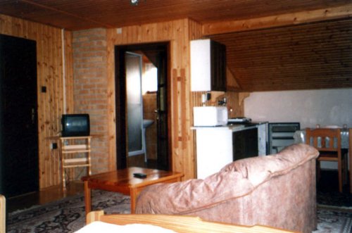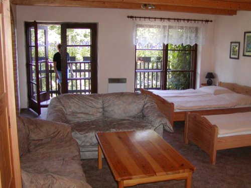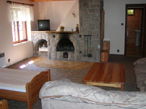 Samostatná kuchyň s jídelnou, lednice, sporák, mikrovlnná trouba, konvice, kávovar. Koupelna s vanou i sprchou, samostatné WC, TV a SAT na pokoji. Krb na pokoji, balkon.