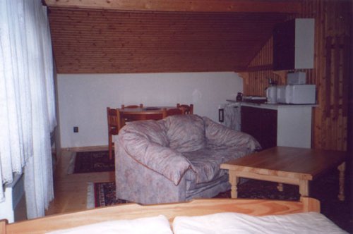 Jídelní kout s kuchyňkou, mikrovlnná trouba, lednice, konvice, kávovar. Sprcha + WC na pokoji. TV a SAT na pokoji, terasa.