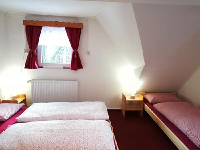 2 pokoje s příslušenstvím a 6 pokojů se spoječným sociálním zařízení. Celkem 30 pevných lůžek. Pro ucelené skupiny možnost pronájmu celého objektu včetně kuchyně a baru s výčepním zařízením.