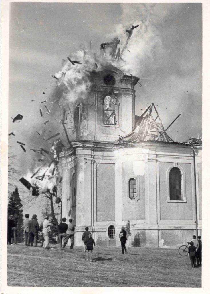 V roce 1967 zachvátil kostel požár, který zničil střechy, poškodil klenby, byla zničena veškerá štukatérská výzdoba i nástropní malba, propadly se podlahy na kůru. Oheň roztavil zvon, věž se zřítila a byly zničeny oba křišťálové lustry. Mobiliář byl zčásti zachráněn díky obětavosti smržovských občanů, ale nedochoval se kompletní. Rekonstrukce střechy kostela proběhla v letech 1969 - 1971. Obnovena byla i věž kostela, kde byl slavnostně, ale bez minimální publicity, zavěšen zvon pocházející z roku 1663 darovaný litoměřickou konzistoří. Dalším škodám se nepodařilo zabránit, protože tímto záchrana vzácné památky nadlouho skončila.