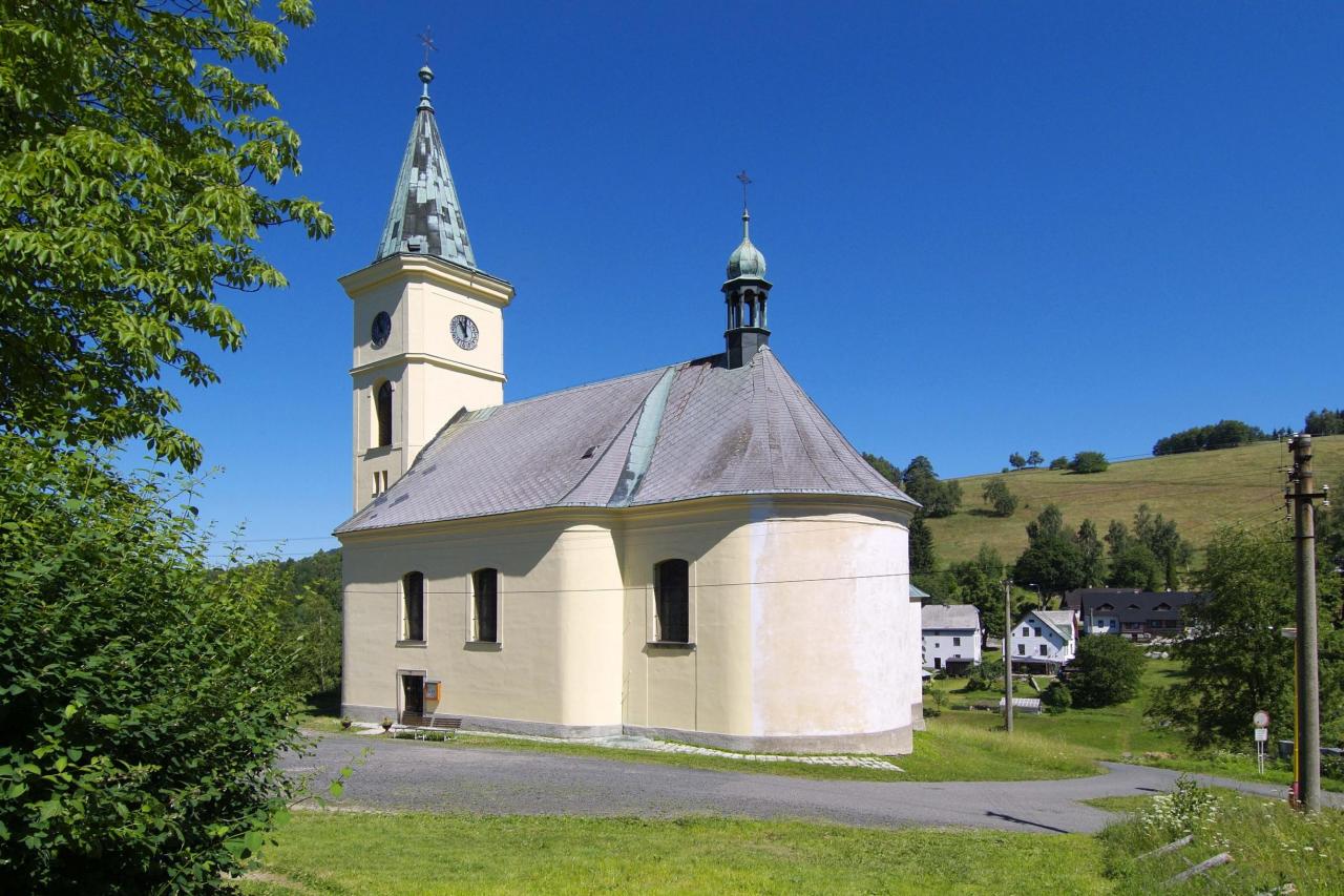 Kostel byl původně zasvěcen sv. Vavřinci. Teprve poté, co patronát převzal hrabě Desfours, byl zasvěcen Františku de Paula. Na hlavním oltáři je obraz sv. Františka de Paula a po jeho stranách dřevořezby sv. Václava a sv. Víta z konce 18. století. V postranních oltářích je obraz sv. Vavřince a socha Panny Marie. Rokoková kazatelna pochází z 18. století. Kazatelna i křtitelnice jsou dokladem značného rozmachu řezbářského řemesla té doby. Jediný zachovalý zvon pochází ze 17. století a byl sem přenesen v roce 1784 z Mladé Boleslavi. Krásný skleněný lustr připomíná, že jsme v oblasti s bohatou sklářskou tradicí.