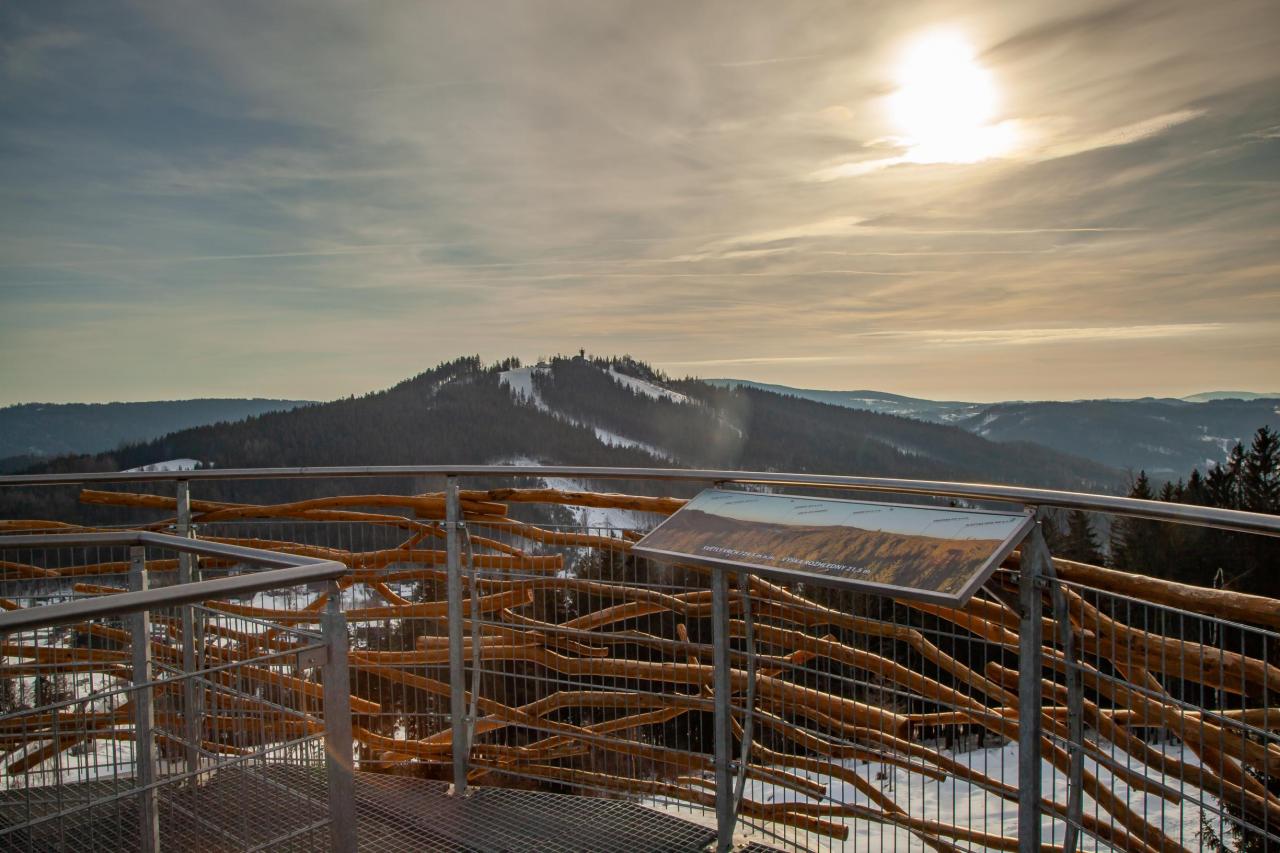 Tato úplně nová rozhledna je dřevostavbou s půdorysem pravidelného osmiúhelníku a točitým schodištěm se 105 stupínky uvnitř rozhledny. Vyhlídková plošina o průměru 6,5 m připomíná ptačí hnízdo. Nabízí kruhový rozhled – od Olivetské hory v Jizerských horách přes Jakušice a vrcholky Krkonoš, Kumburk, Tábor, Tanvaldský Špičák, Terezínku, Muchov, Černou studnici a Javorník zpět k Jizerkám – např. Královce.