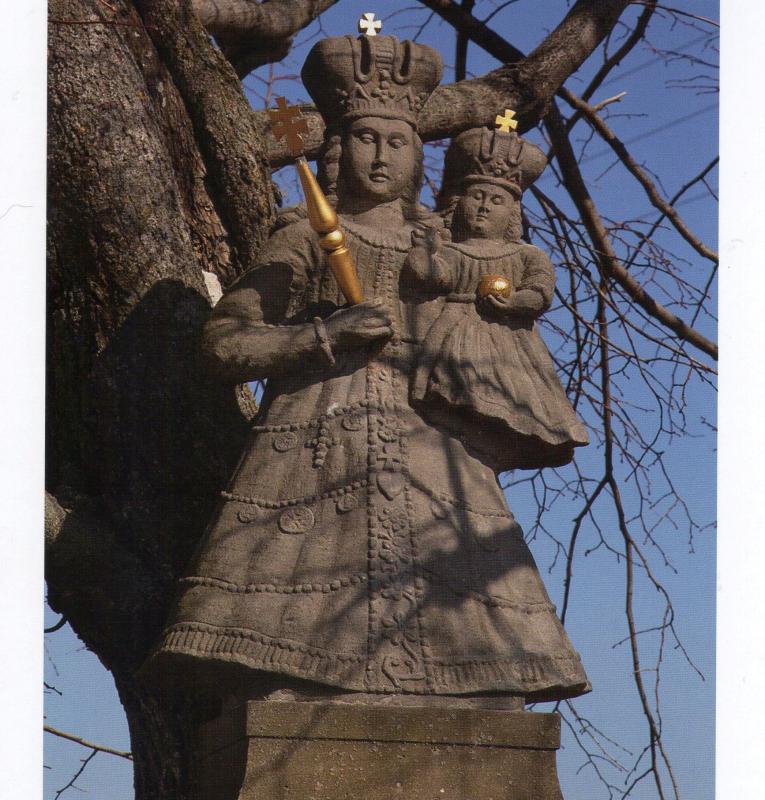 Na návsi poblíž kostela stojí půvabná socha Panny Marie v provedení immaculata. Jedná se o ikonografický typ neposkvrněné Panny Marie vznášející se v oblacích. Někdy stojí na zeměkouli, jindy, jako v tomto případě, na půlměsíci. Toto spodobnění je charakteristické hlavně pro barokní umění.