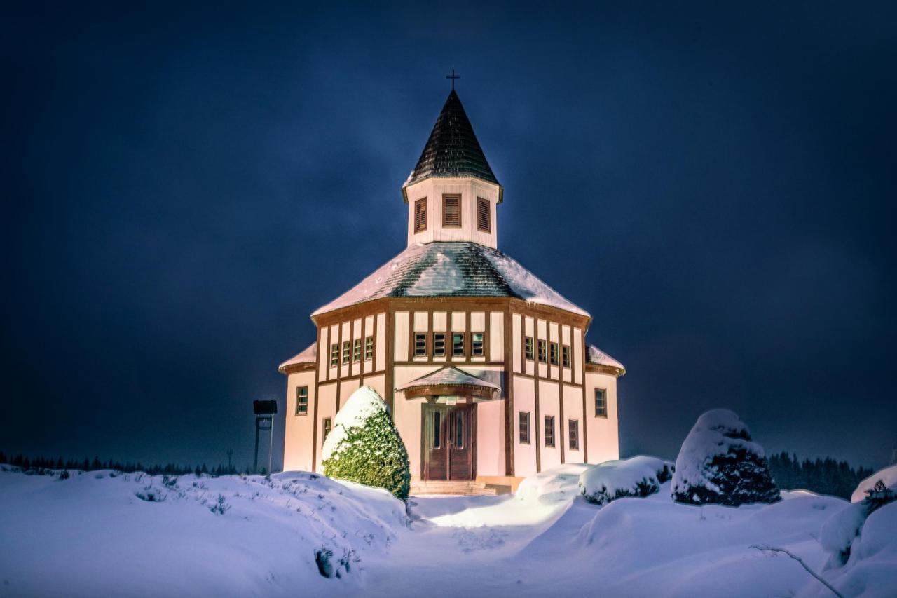 V centru Kořenova stojí zdaleka viditelný symbol obce, osmiboká tesařovská kaple.