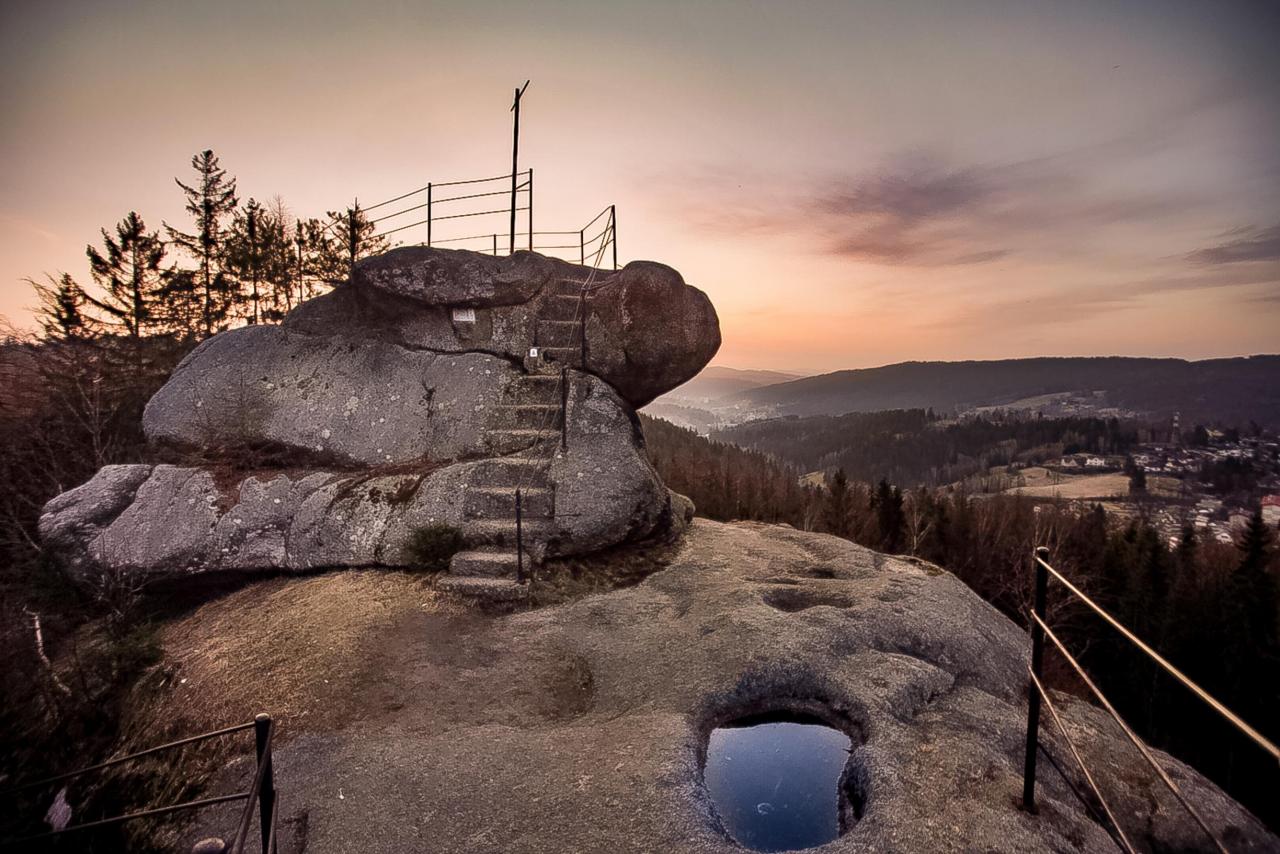 Skála dosahuje nadmořské výšky 688 m a poskytuje široký výhled do okolí, zejména k jihu na Smržovku a Černostudniční hřeben. Nacházejí se zde také jedny z největších skalních hrnců v Jizerských horách, nejznámější je tzv. Čertova studánka.